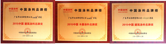 2015年12月18日,由中國涂料工業(yè)協(xié)會主辦的“2015中國水性工業(yè)涂料發(fā)展研討會暨2015中國涂料品牌榜頒獎盛典”在北京隆重舉辦,威士伯榮獲“2015年建筑涂料名牌獎”,華潤漆榮獲“2015年建筑涂料名牌獎”和“2015中國木器涂料名牌獎”。