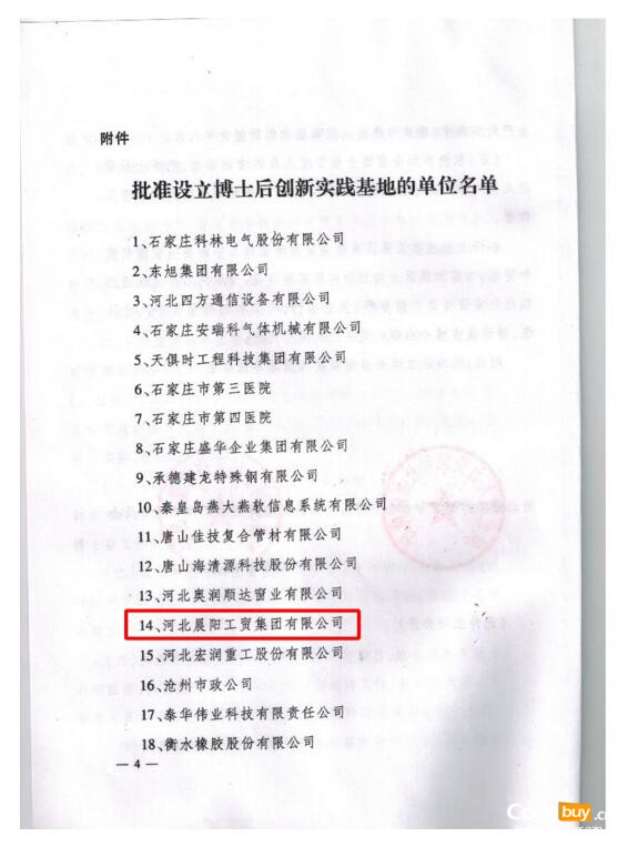 根據(jù)博士后工作總體規(guī)劃,經(jīng)專家評(píng)議,河北省人力資源和社會(huì)保障廳、省博士后管理委員會(huì)研究決定,批準(zhǔn)河北晨陽(yáng)工貿(mào)集團(tuán)有限公司等30個(gè)單位設(shè)立博士后創(chuàng)新實(shí)踐基地,開展博士后工作。