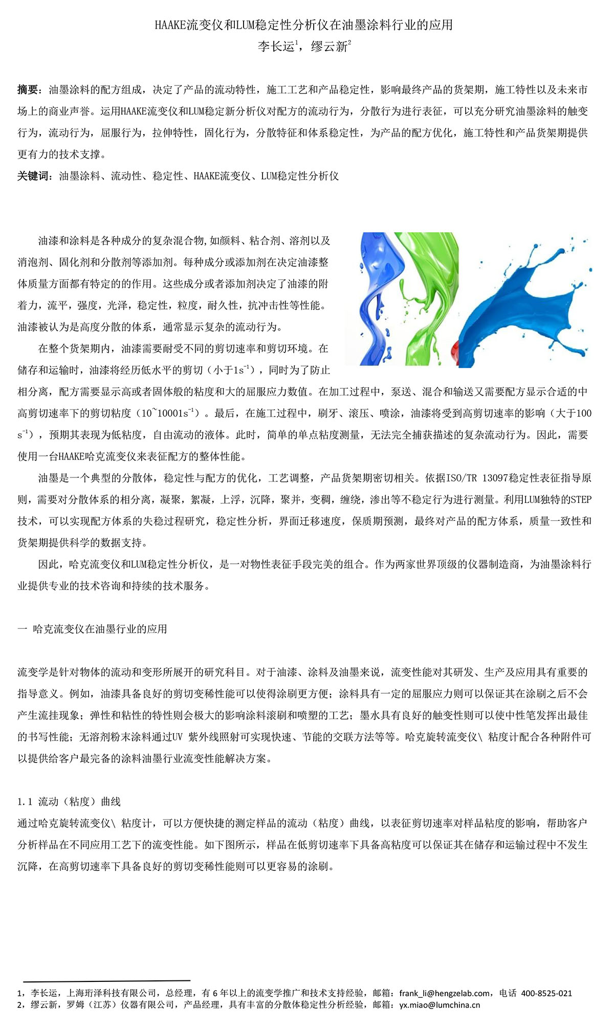 HAAKE流變儀和LUM穩(wěn)定性分析儀在油墨涂料行業(yè)的應(yīng)用
