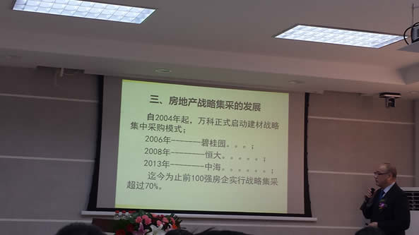 中國涂料工業(yè)協(xié)會建筑涂料分會理事長徐理德先生致歡迎辭,并就房地產(chǎn)與涂料戰(zhàn)略合作集采發(fā)展趨勢進(jìn)行了分析,徐理德理事長指出,2013年中國市場上超過100億元的企業(yè)有2家(分別是立邦和阿克蘇諾貝爾),超過20億元的有11家(包括上海涂料,嘉寶莉,PPG,威士伯,湘江等),其中建筑涂料年銷售額超過10億元以上的有4家。在目前宏觀政策處于震蕩時期,各房地產(chǎn)企業(yè)通過對管控模式、產(chǎn)品結(jié)構(gòu)、區(qū)域布局、融資渠道等方面多管齊下,全面提升核心競爭力。其中建材產(chǎn)品采購的質(zhì)量和價格成為各個房企關(guān)注焦點之一,而戰(zhàn)略集中采購模式逐漸成為一種趨勢。迄今為止前100強房企實行戰(zhàn)略集采的超過70%,并呼吁房地產(chǎn)企業(yè)為了減少流程、節(jié)省支出等,應(yīng)盡量采取集采的方式,達(dá)成共贏。