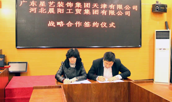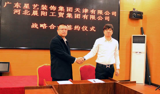 晨陽(yáng)保廊分公司總經(jīng)理劉文強(qiáng)與廣東星藝裝飾天津分公司總經(jīng)理冷祖良簽署戰(zhàn)略合作協(xié)議
