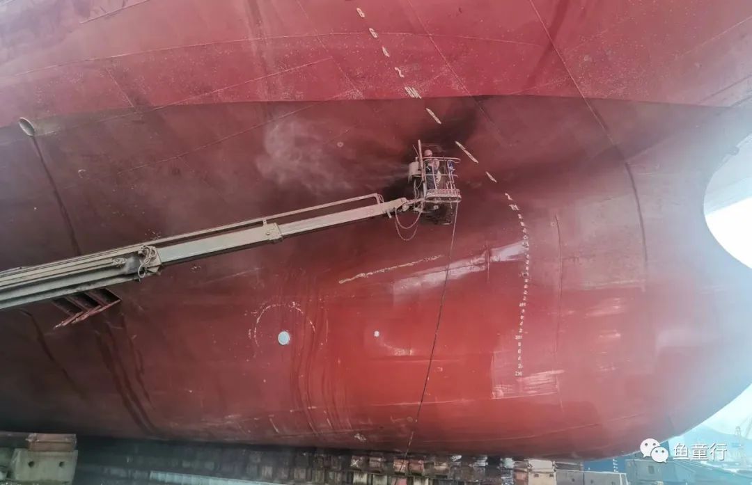 廈門市祥蘇海運有限公司經(jīng)營著由多艘遠洋和近海船只組成的多元化船隊,主要從事貨物運輸,船舶修造、船舶管理、商務服務等綜合性服務。其中80000DWT散貨船”祥蘇6“船長230m,船寬32m,型深20m。該船于2022年6月在長宏國際船舶修造有限公司進塢進行日常維護,魚童為“祥蘇6”整船提供了高品質(zhì)涂料,全船船體涂裝面積達15000平方。
