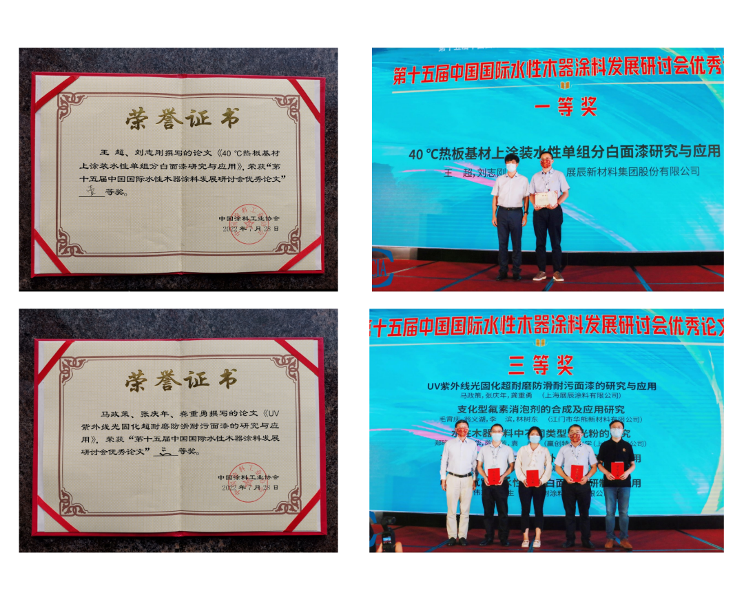 本次大會(huì)還對(duì)優(yōu)秀水性涂料學(xué)術(shù)論文進(jìn)行評(píng)選和表彰,展辰依然體現(xiàn)出強(qiáng)大的技術(shù)創(chuàng)新能力及共同發(fā)展的分享精神,獲得優(yōu)秀論文一等獎(jiǎng)及三等獎(jiǎng)。
