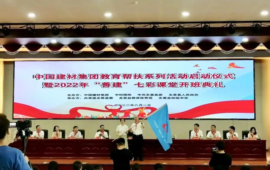 8月1日上午,中國建材集團(tuán)教育幫扶系列活動(dòng)啟動(dòng)儀式暨2022年“善建”七彩課堂開班典禮在云南省永善縣順利舉行。中國建材集團(tuán)黨委副書記常張利出席會(huì)議,向北新建材及相關(guān)兄弟企業(yè)的志愿者授予志愿服務(wù)旗幟。