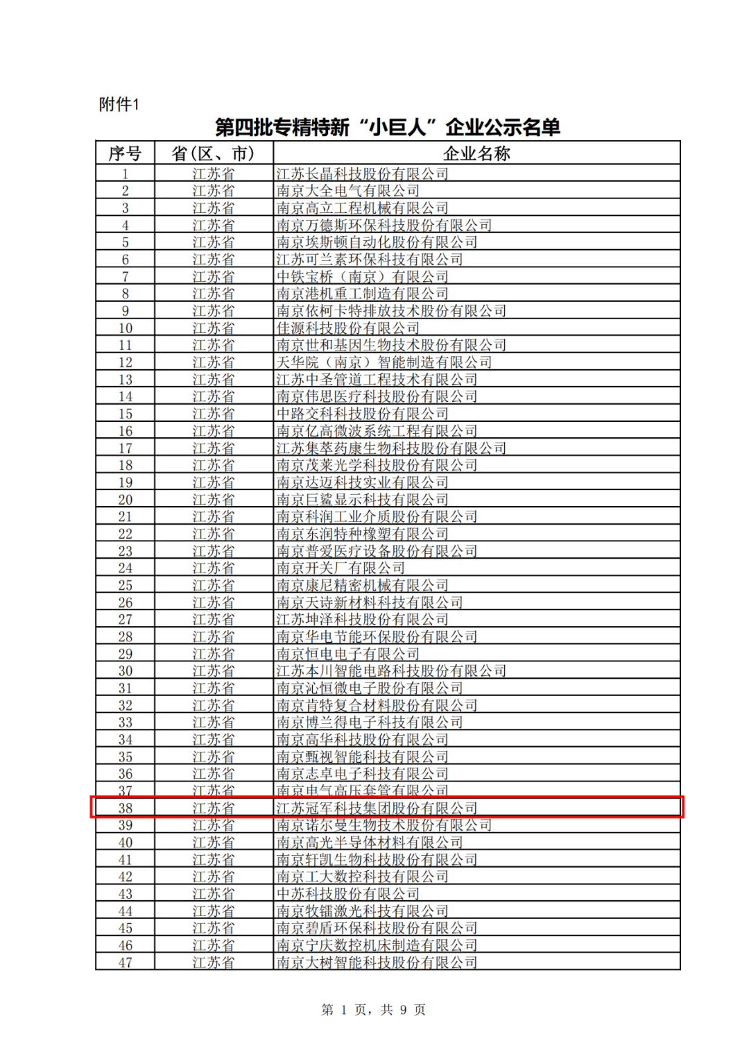 8月9日,根據(jù)國(guó)家工信部統(tǒng)一部署,江蘇省工信廳發(fā)布了《關(guān)于江蘇省第四批專(zhuān)精特新“小巨人”企業(yè)和第一批專(zhuān)精特新“小巨人”復(fù)核通過(guò)企業(yè)名單的公示》,全省共425家企業(yè)進(jìn)入第四批專(zhuān)精特新“小巨人”名單,其中南京市入圍62家,江蘇冠軍集團(tuán)成功入選,這是繼去年集團(tuán)獲評(píng)省級(jí)專(zhuān)精特新小巨人企業(yè)之后,一年內(nèi)再創(chuàng)新高,獲得的又一重量級(jí)榮譽(yù)。
