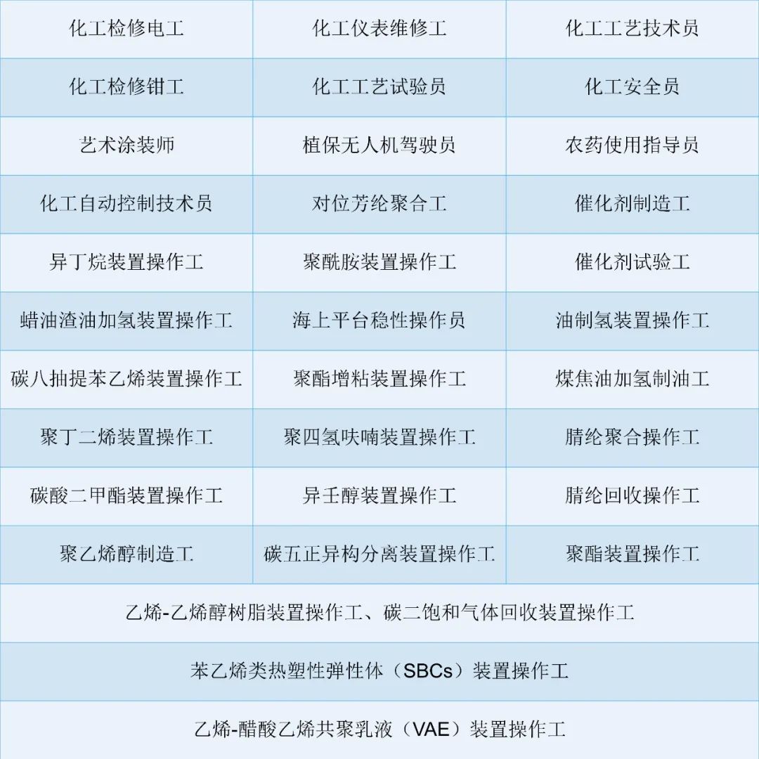 《中華人民共和國(guó)職業(yè)分類(lèi)大典(2022年版)》(公示稿)中編錄了石油和化工行業(yè)提交的數(shù)字職業(yè)1個(gè),新職業(yè)2個(gè),新工種34個(gè),更名工種1個(gè)。