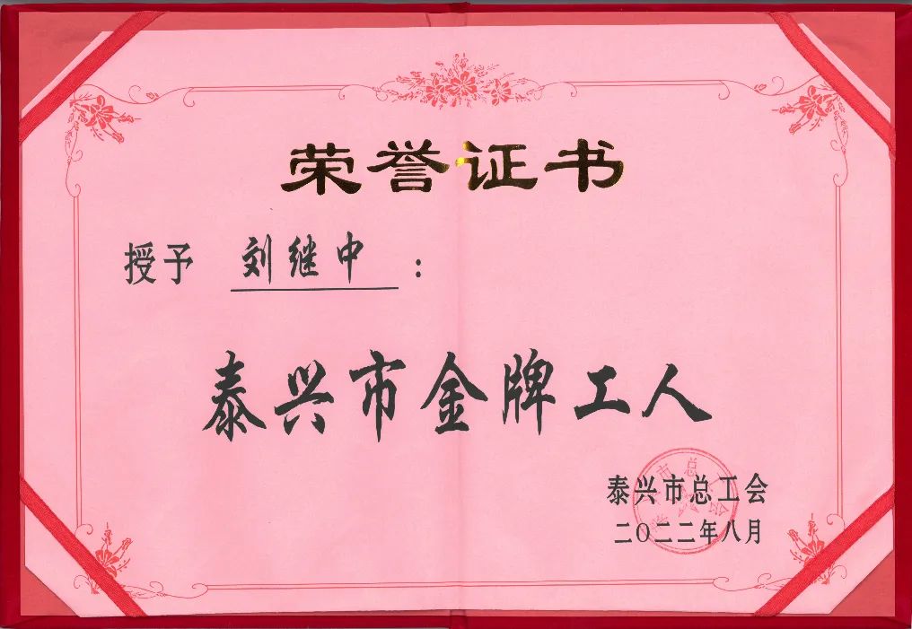 榮譽(yù)|潤泰一線員工獲評泰興市“金牌工人”