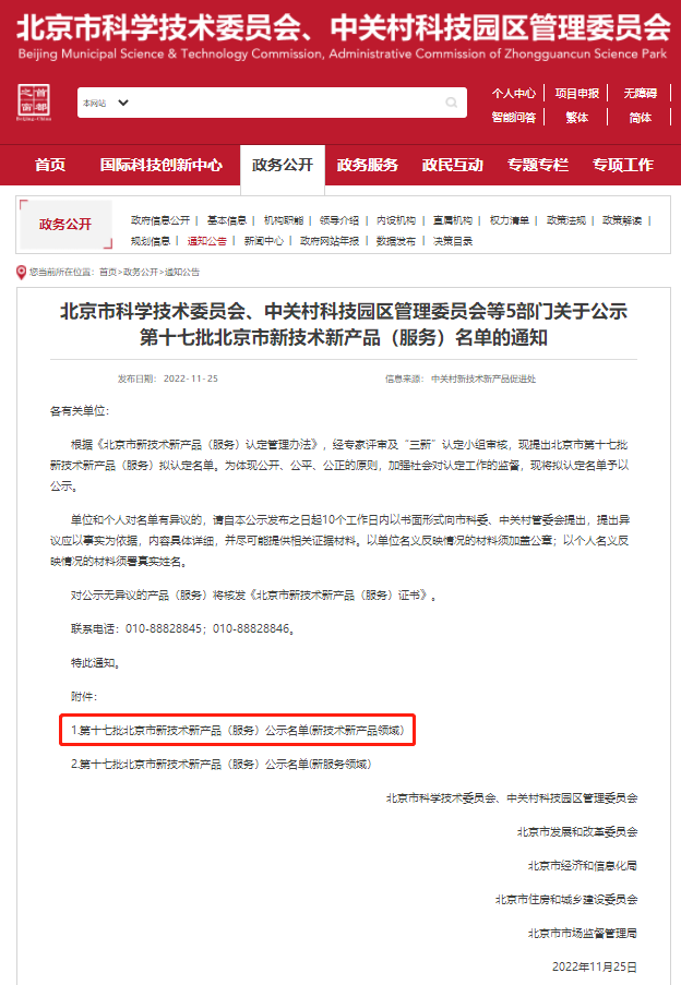 近日,北京市科學技術(shù)委員會、中關(guān)村科技園區(qū)管理委員會等部門公布了第十七批北京市新技術(shù)新產(chǎn)品(服務)認定名單。