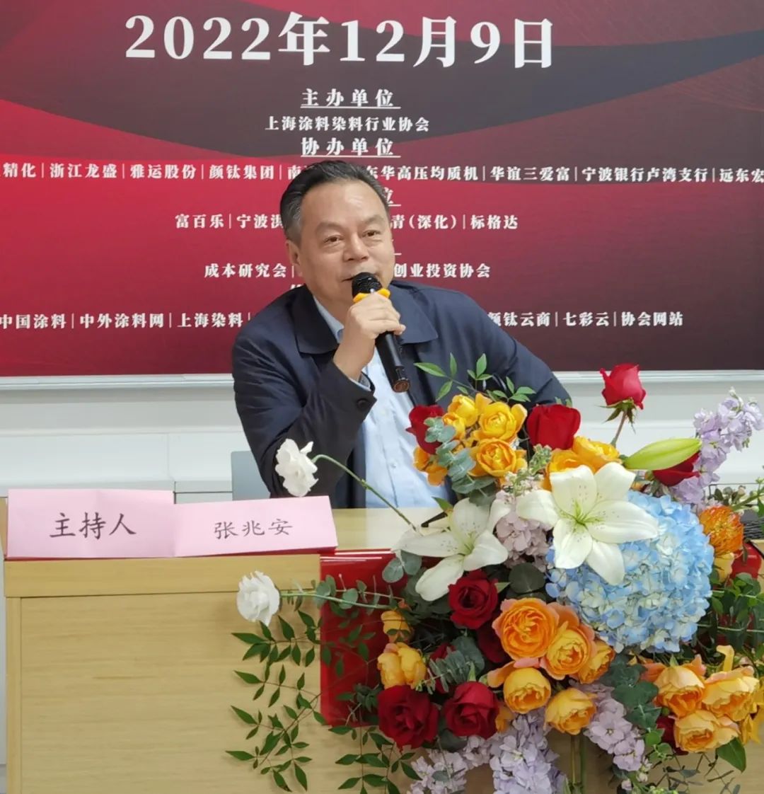 上海涂料染料行業(yè)協(xié)會秘書長張水鶴介紹出席會議主要嘉賓