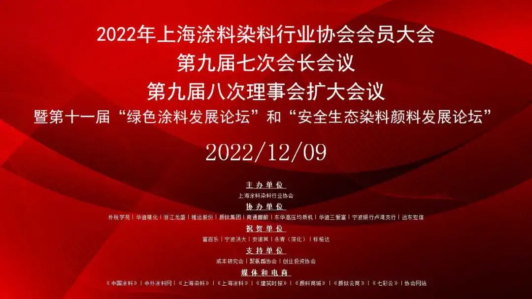 2022年上海涂料染料行業(yè)協(xié)會九屆會長七次會議、理事八次擴大會議和會員大會暨第十一屆“綠色涂料發(fā)展論壇”和“安全生態(tài)染料顏料發(fā)展論壇”
