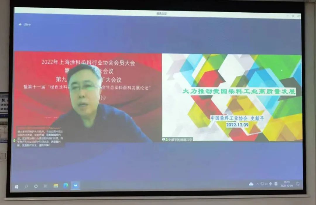 中染協(xié)會長史獻平線上作了“大力推動我國染料工業(yè)高質(zhì)量發(fā)展”的報告