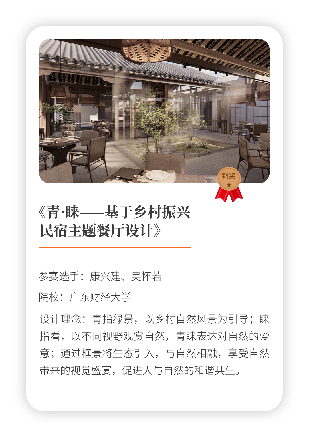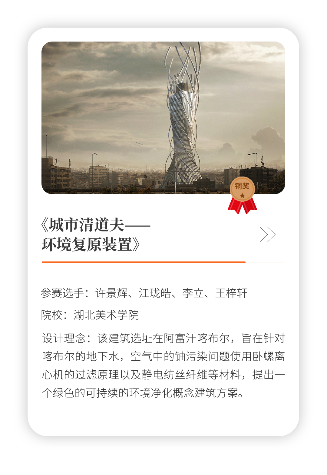 賽事設(shè)置建筑設(shè)計(jì)和室內(nèi)設(shè)計(jì)兩條賽道,圍繞“生態(tài)人居,永續(xù)精‘彩’”這一主題對(duì)作品提出了不同的要求。在八位專業(yè)評(píng)委與聯(lián)合主辦方評(píng)審團(tuán)的見(jiàn)證下,來(lái)自西安美術(shù)學(xué)院的韓祎、李婧瑜、吳錦瑤、王一凡創(chuàng)作的《“韌性·空間”河西傳統(tǒng)生土民堡聚落新體系探究設(shè)計(jì)》和來(lái)自清華大學(xué)美術(shù)學(xué)院的姚金昊、李禹霏創(chuàng)作的《夢(mèng)境邊緣—酒吧設(shè)計(jì)》脫穎而出,分別摘得建筑組和室內(nèi)組金獎(jiǎng)。