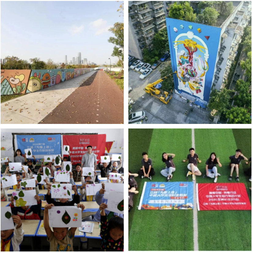 目前,「為愛上色」已覆蓋中國百余個城市、鄉(xiāng)鎮(zhèn),完成超過406個美化校園工程,以“兒童關(guān)懷”及“動物保護”為主題打造了214幅大型藝術(shù)墻繪,捐贈390間快樂美術(shù)教室,吸引逾15000名高校大學(xué)生參與農(nóng)村支教,3000余萬人因此受益。