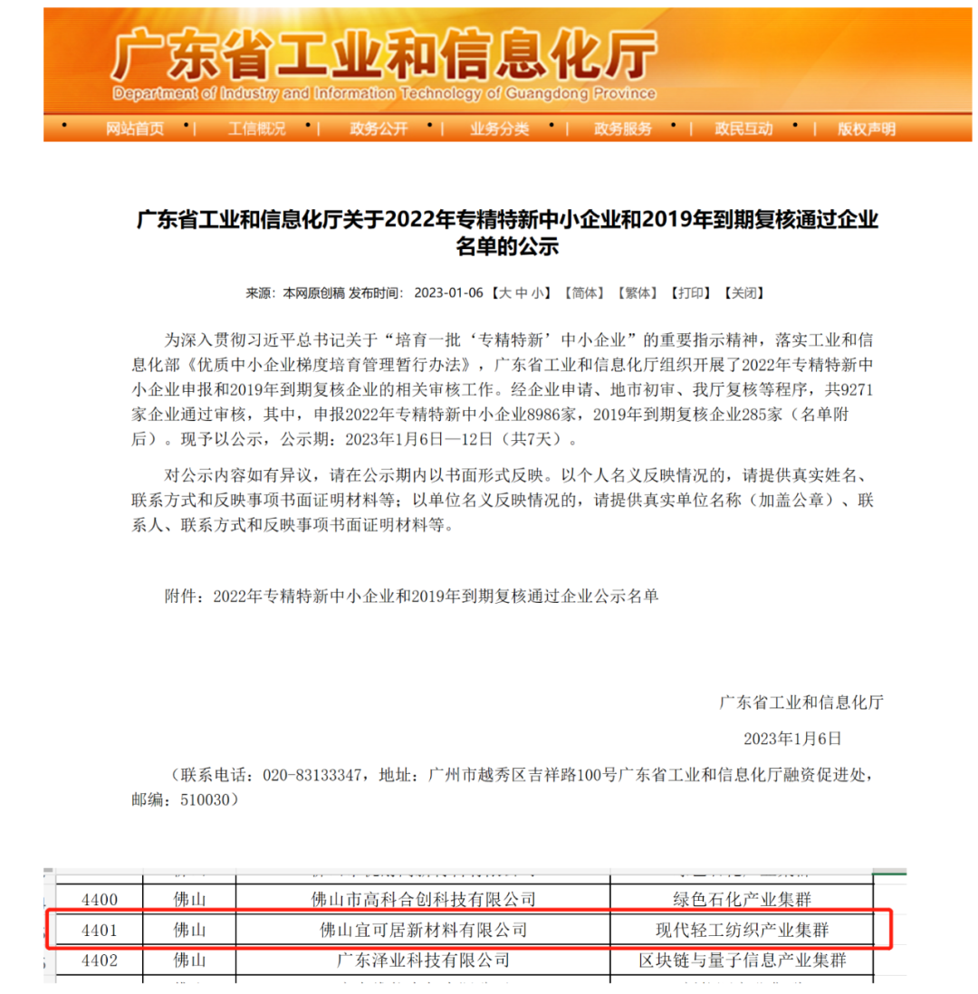 1月6日,廣東省工業(yè)和信息化廳和廣東省科學(xué)技術(shù)廳分別公示了2022年專精特新中小企業(yè)名錄和2022年度廣東省工程技術(shù)研究中心名單,艾勒可全資子公司宜可居榜上有名。