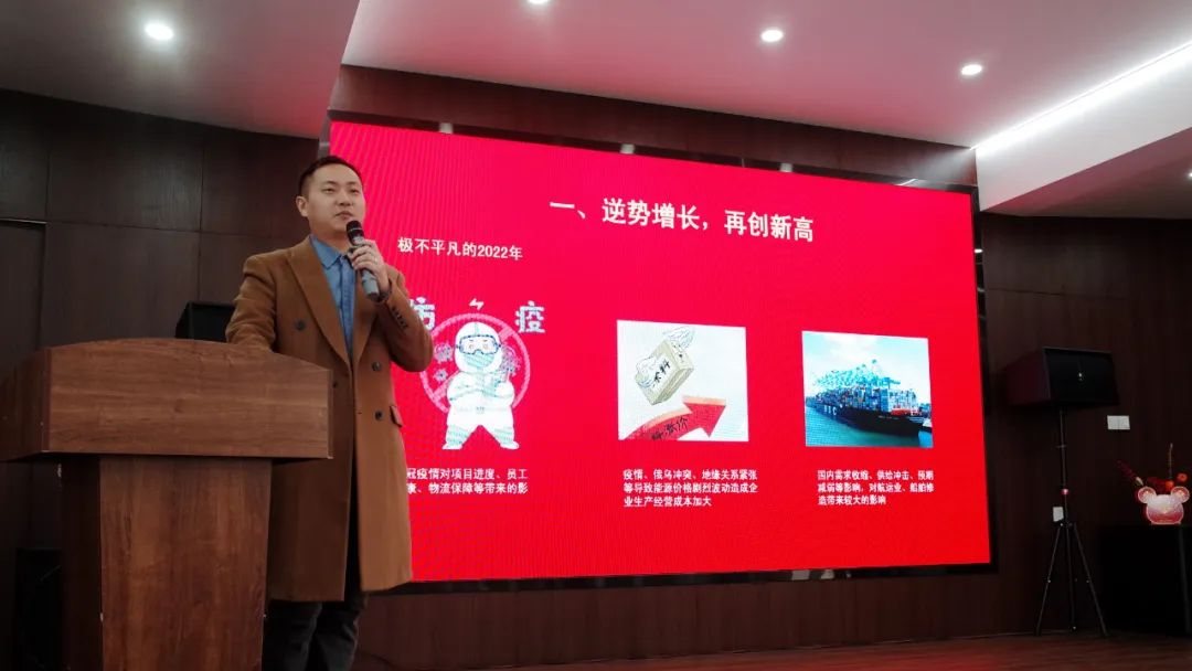伴隨著熱烈的掌聲,魚童股份總經(jīng)理曾超為全體員工帶來的精彩的講話。2022年對于魚童而言,是極不平凡的一年。疫情防控、原材料價格波動、國內(nèi)需求收縮等對市場造成負(fù)面影響,魚童人積極進取,創(chuàng)新突破,實現(xiàn)了產(chǎn)銷量的逆勢增長,取得了值得自豪的業(yè)績突破?! ≡谶@辭舊迎新的時刻,曾總總結(jié)了魚童的競爭力與短板,也憧憬了魚童的未來。希望通過一系列變革,同所有魚童人一起打造成一個堅定以客戶為中心、擁有濃厚學(xué)習(xí)氛圍,敏捷進取的團隊,形成“魚您童行,為愛奮斗”的文化氛圍,實現(xiàn)魚童可持續(xù)健康發(fā)展。