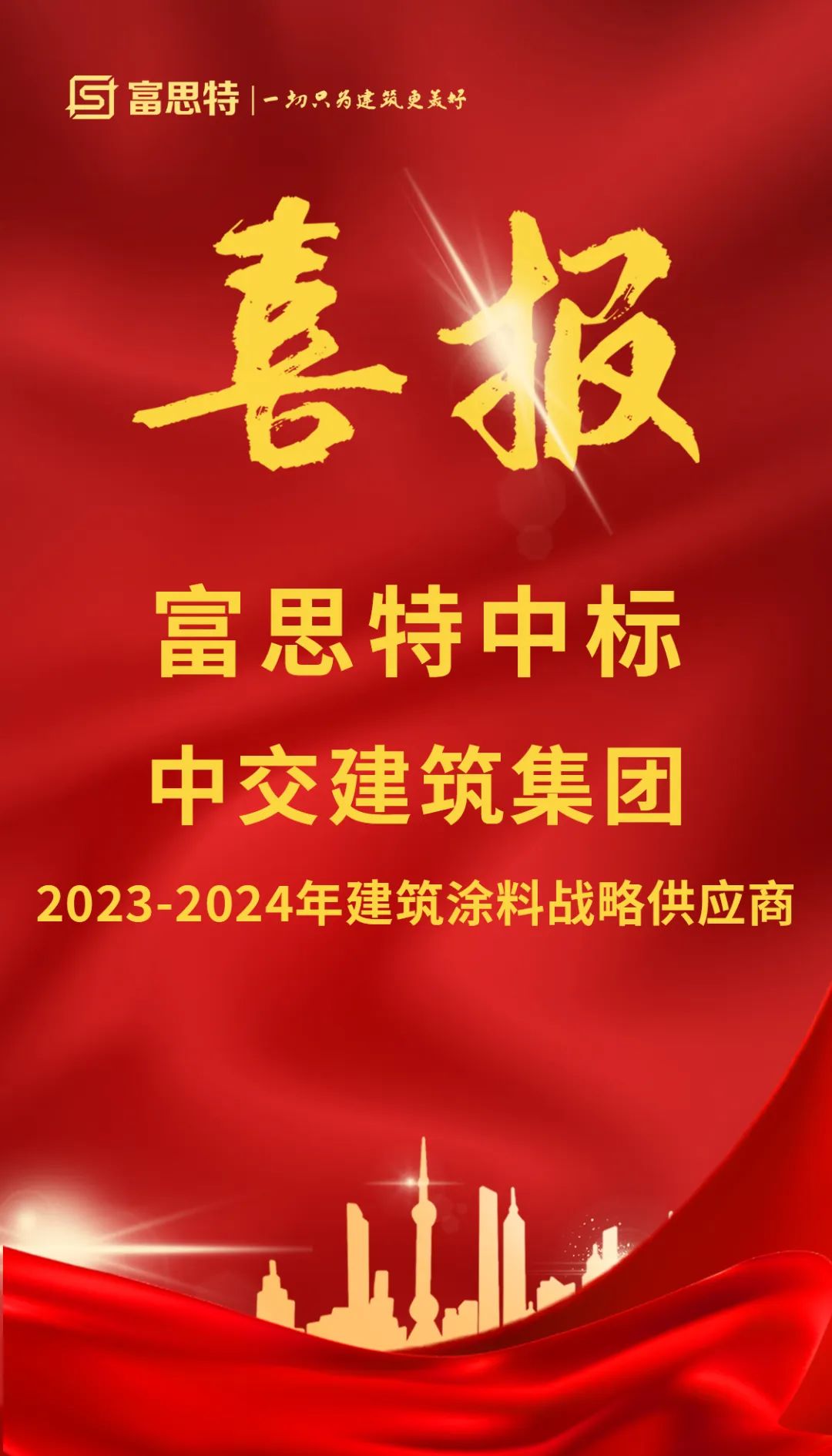 中標(biāo)|富思特中標(biāo)中交建筑集團(tuán)有限公司2023-2024年度建筑涂料戰(zhàn)略供應(yīng)商