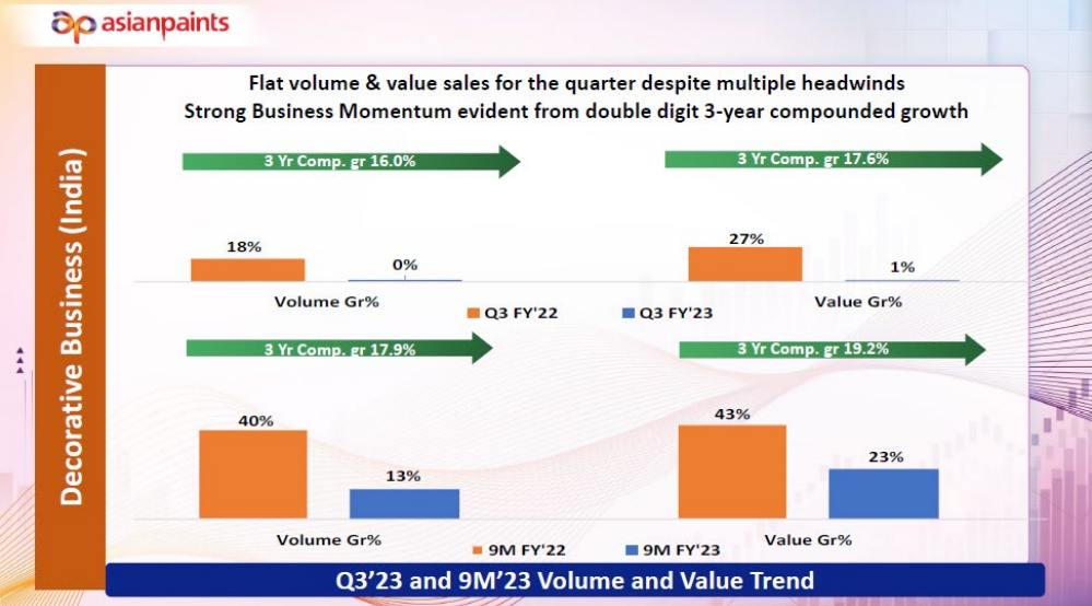 1月19日,印度涂料制造商亞洲涂料(Asian Paints)發(fā)布2023財(cái)年(2022年4月1日-2023年3月31日)Q3業(yè)績(jī)報(bào)告。
