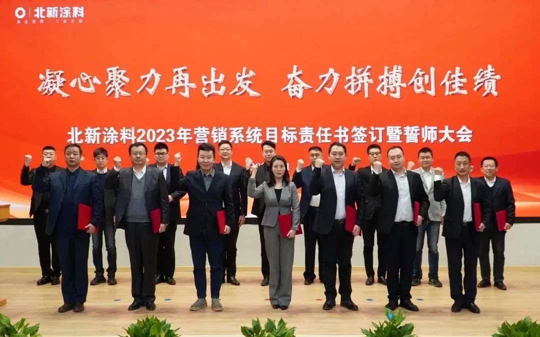 2月1日,北新涂料2023年?duì)I銷系統(tǒng)目標(biāo)責(zé)任書簽訂儀式暨誓師大會(huì)在北京未來科學(xué)城北新建材總部舉行。北新涂料領(lǐng)導(dǎo)班子成員,龍牌涂料、燈塔涂料營(yíng)銷系統(tǒng)全體成員以及總部職能部門負(fù)責(zé)人通過現(xiàn)場(chǎng)+視頻的形式參加了會(huì)議。