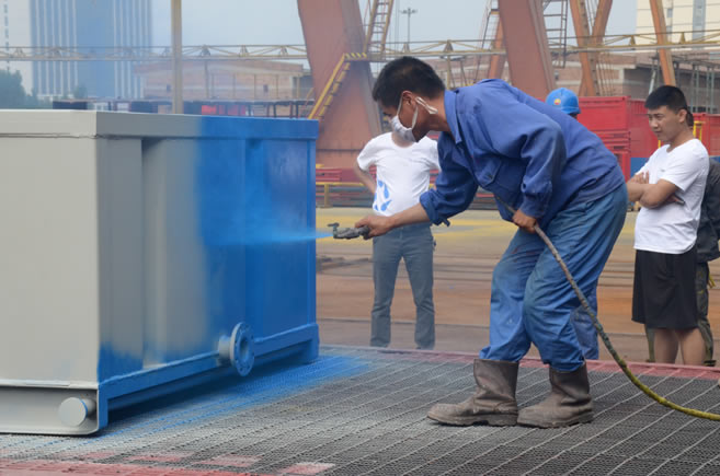 目前,晨陽水漆已和渤海裝備技術(shù)對(duì)接完畢,進(jìn)行到試驗(yàn)階段。實(shí)驗(yàn)首先從任丘的鉆井設(shè)備廠開始,經(jīng)過親身體驗(yàn)試驗(yàn)過程,確定水漆安全環(huán)保,顏色艷麗,附著力、硬度等指標(biāo)完全符合客戶需求,現(xiàn)場(chǎng)得到了石油系統(tǒng)及地方環(huán)保部門的高度認(rèn)可。