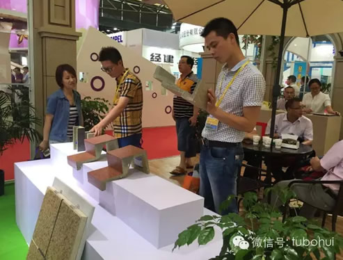 固克涂料集團(tuán)旗下高端品牌“天工石”,其作為仿真石外墻裝飾保溫系統(tǒng)首選品牌,以仿歐建筑的風(fēng)格、超越石材的新材料、新工藝亮相上海,全方位展示品牌實力,博得贊譽的同時,吸引眾多專業(yè)觀眾駐足參觀咨詢,也更成功吸引海內(nèi)外客商的關(guān)注。技術(shù)與工藝的融合,源于石材,勝于石材,天工石以其卓越的環(huán)保節(jié)能特性超越石材,開啟了低碳生活新時代,實現(xiàn)建筑與城市和諧相融,為客戶打造綠色建筑、綠色裝飾保駕護(hù)航。
