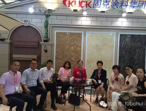 中國涂料工業(yè)協(xié)會會長孫蓮英女士(中)蒞臨固克展位
