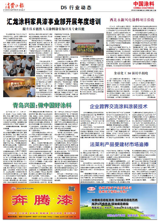 中國(guó)涂料報(bào) 2014年8月14日 星期四