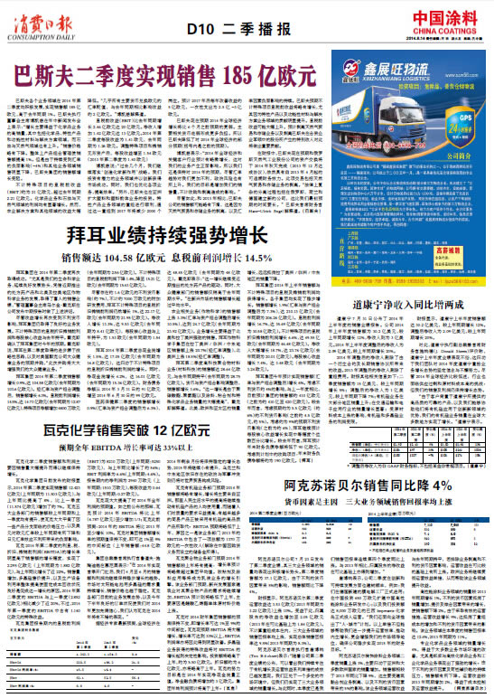 中國涂料報 2014年8月14日 星期四