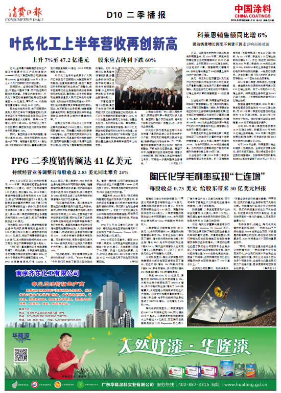 中國涂料報 2014年8月28日 星期四