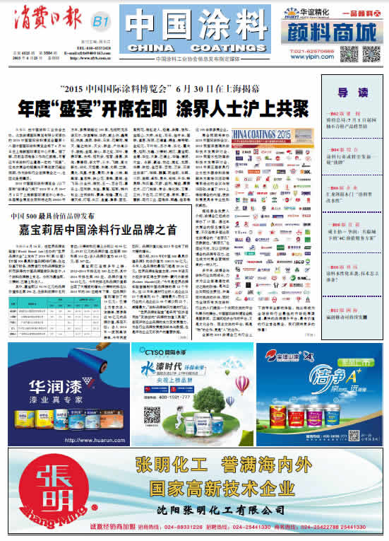 中國涂料報(bào) 2015年6月25日 星期四