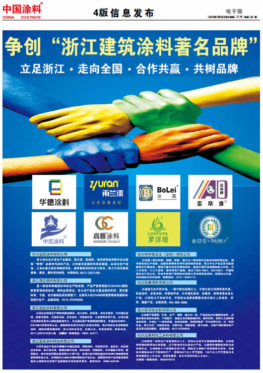 《中國(guó)涂料報(bào)》(電子版)的一切內(nèi)容(包括但不限于文字、圖片、PDF、圖表、標(biāo)志、標(biāo)識(shí)、商標(biāo)、版面設(shè)計(jì)、專欄目錄與名稱、內(nèi)容分類標(biāo)準(zhǔn)以及為讀者提供的任何信息)僅供中國(guó)涂料信息網(wǎng)讀者閱讀、學(xué)習(xí)研究使用,未經(jīng)中國(guó)涂料雜志社有限公司及/或相關(guān)權(quán)利人書面授權(quán),任何單位及個(gè)人不得將《中國(guó)涂料報(bào)》(電子版)所登載、發(fā)布的內(nèi)容用于商業(yè)性目的,包括但不限于轉(zhuǎn)載、復(fù)制、發(fā)行、制作光盤、數(shù)據(jù)庫(kù)、觸摸展示等行為方式,或?qū)⒅诜潜菊舅鶎俚姆⻊?wù)器上作鏡像。否則,中國(guó)涂料雜志社有限公司將采取包括但不限于網(wǎng)上公示、向有關(guān)部門舉報(bào)、訴訟等一切合法手段,追究侵權(quán)者的法律責(zé)任。