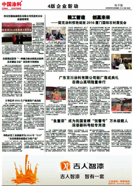 中國涂料報(bào) 2016年3月31日