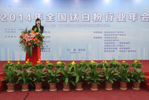 在中國涂料工業(yè)協(xié)會鈦白粉行業(yè)分會郭欣榮秘書長的主持下開始。攀枝花市人民政府常務(wù)副市長于會文首先代表東道主攀枝花市向大會致開幕辭,中國涂料工業(yè)協(xié)會秘書長楊淵德代表協(xié)會致辭。